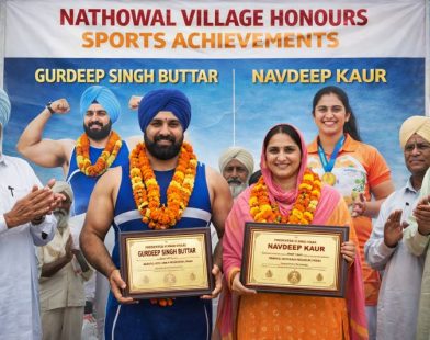 Nathowal Village Honours Gurdeep Singh Buttar and Navdeep Kaur for Sports Achievements